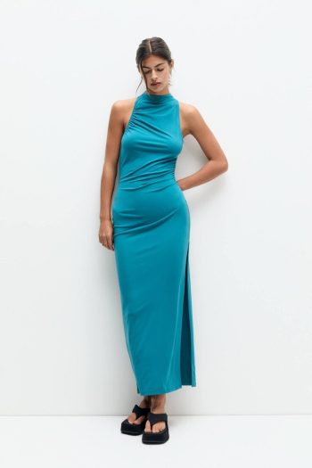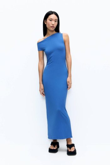 Long Dress With An Asymmetric Neckline Blue | Women Long