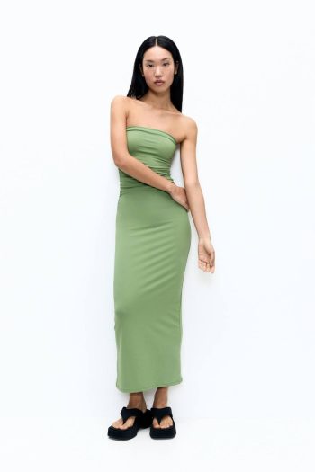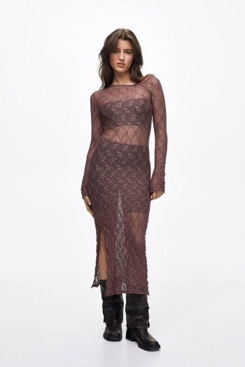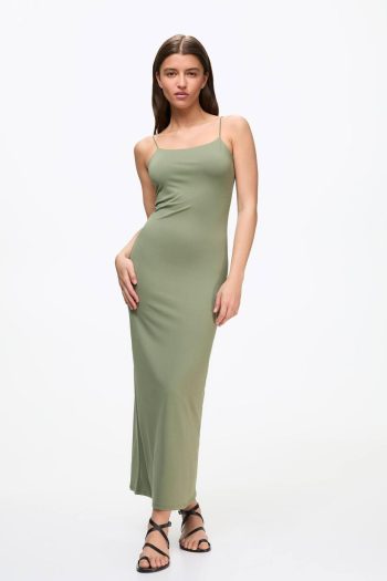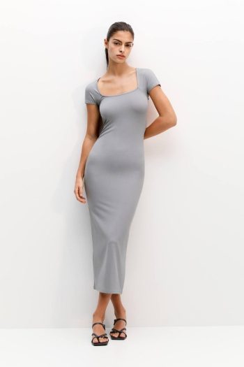 Polyamide Midi Dress With Open Back Pearl Grey | Women Long