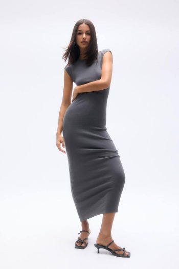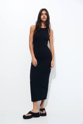 Ribbed Midi Dress With Choker Necklace Detail Black | Women Long
