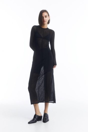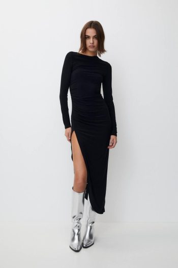 Long Asymmetric Dress With Long Sleeves Black | Women Long