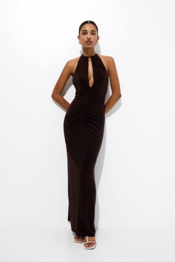 Leopard Print Halter Midi Dress Leopard Print-camel | Women Open Back
