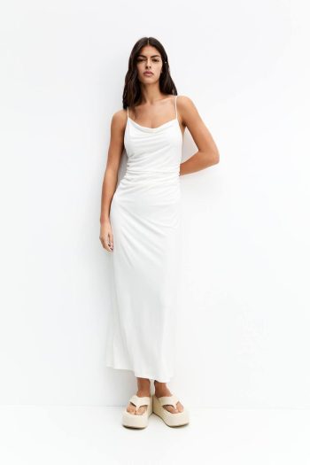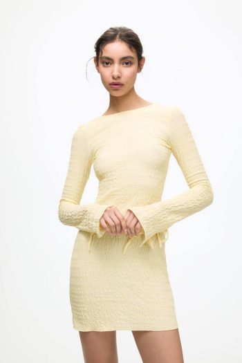 Textured Short Dress With Open Back Ecru | Women Open Back