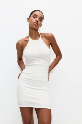 Off-The-Shoulder Open Knit Dress Ecru | Women Short