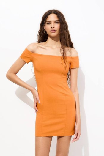 Short Fitted Off-The-Shoulder Dress Tangerine | Women Short