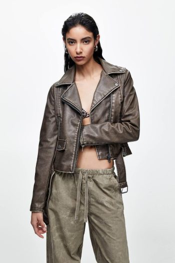 Faux Leather Biker Jacket Brown | Women Biker Jackets