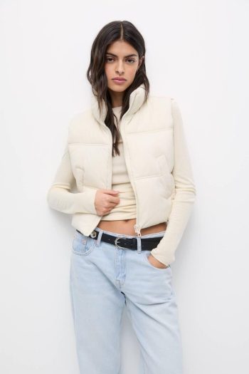 Short Puffer Vest Ecru | Women Puffer Jackets