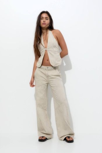 Wide-Leg Jeans With Visible Seams Stone | Women Wide Leg