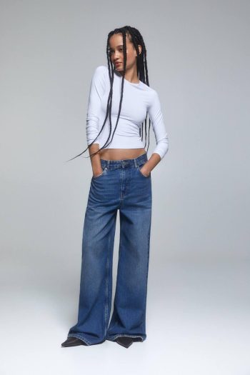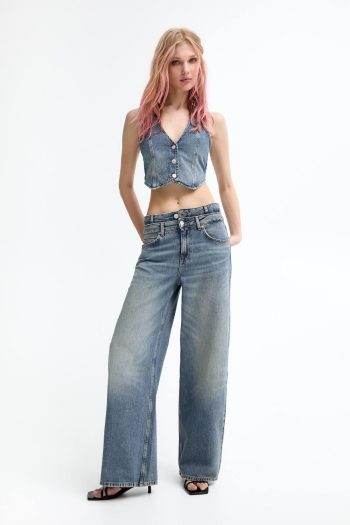 Baggy Jeans With Double Waist Medium Blue | Women Baggy
