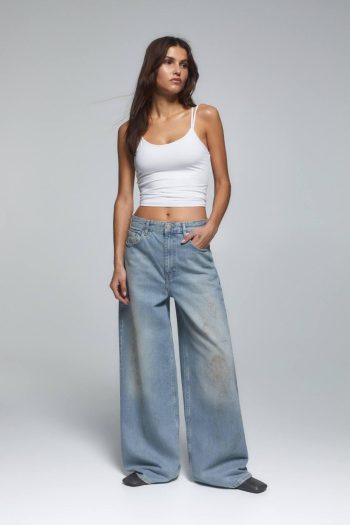 Dirty-Effect Super Baggy Jeans Blue | Women Baggy