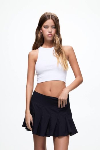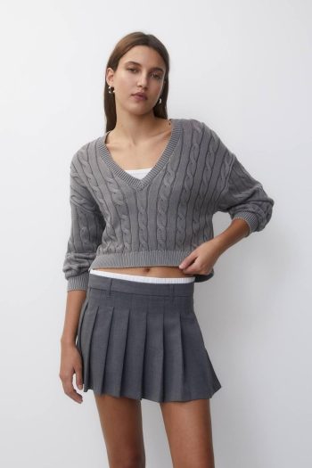 Box Pleat Mini Skirt With Boxers Waist Grey | Women Mini