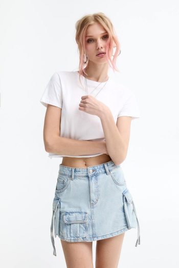 Denim Cargo Mini Skirt Pale Blue | Women Mini