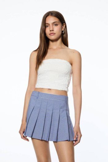 Gingham Box Pleat Mini Skirt Blue | Women Mini
