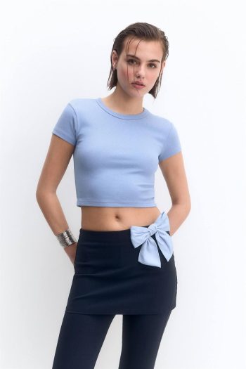 Ribbed Cropped T-Shirt Pale Blue | Women Basic