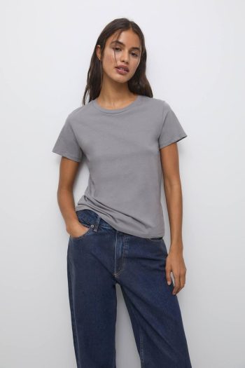 Basic Fitted Short Sleeve T-Shirt Grey Marl | Women Basic