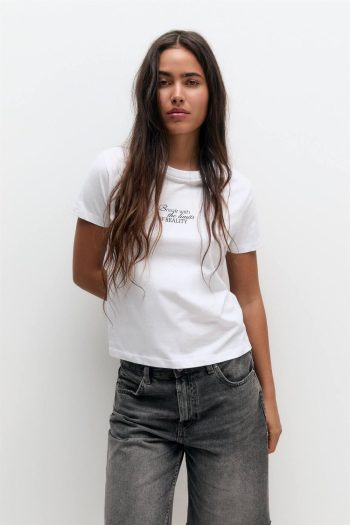 Short Sleeve T-Shirt With Slogan White | Women Graphics