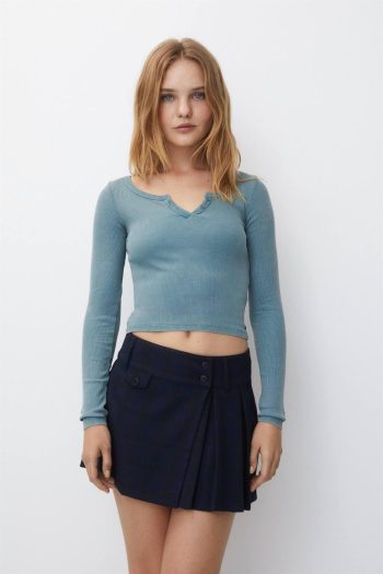 Long Sleeve Henley T-Shirt Greenish Blue | Women Long Sleeve