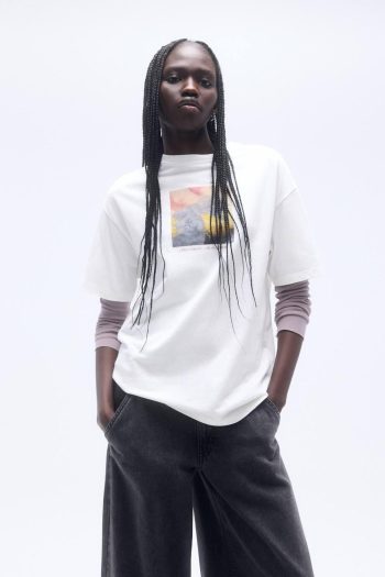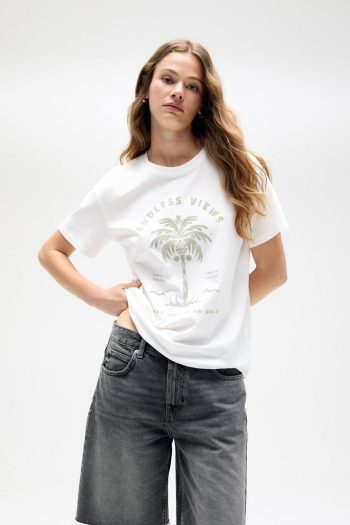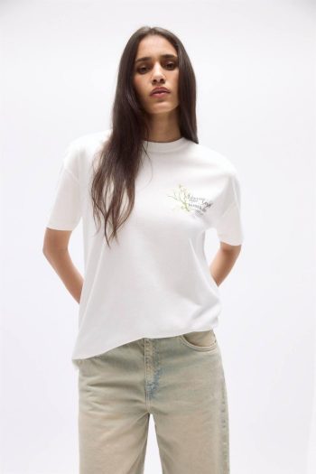 Short Sleeve T-Shirt With Printed Graphic Ecru | Women Short Sleeves