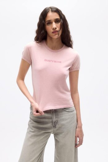 Short Sleeve T-Shirt With Slogan Pink | Women Short Sleeves