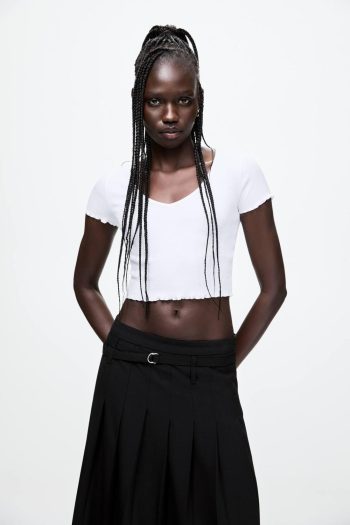 Cropped V-Neck T-Shirt White | Women Short Sleeves