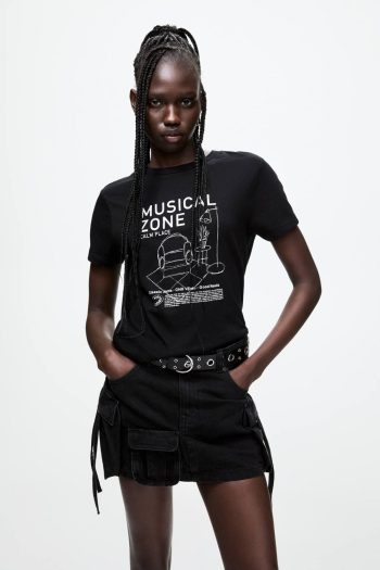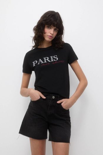 Short Sleeve T-Shirt With Slogan Black | Women Short Sleeves