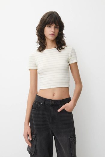 Striped Short Sleeve T-Shirt Ecru/beige | Women Graphics