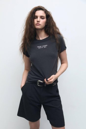 Faded Short Sleeve T-Shirt With Graphic Anthracite Grey | Women Graphics