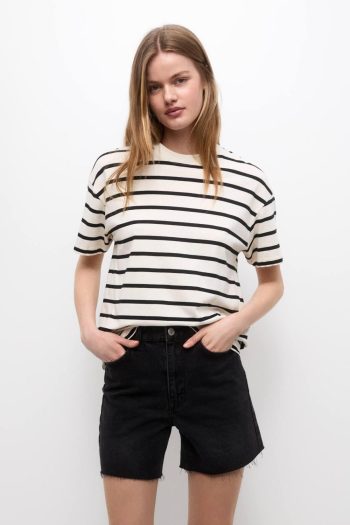 Striped Short Sleeve T-Shirt Ecru/black | Women Short Sleeves