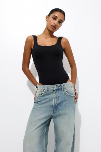 Bodysuit With Straight-Cut Neckline And Trim Black | Women Bodysuits