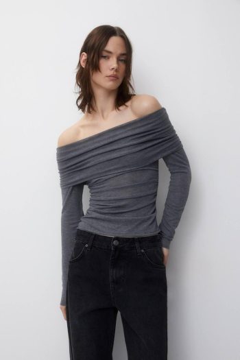 Off-The-Shoulder Top Pale Grey | Women Off-The-Shoulder