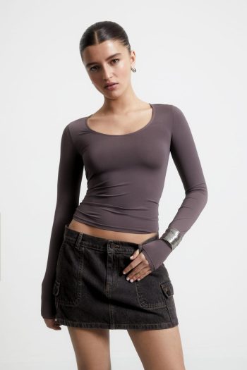 Slim-Fit Long Sleeve T-Shirt Eggplant | Women Long Sleeves