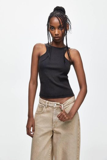 Washed Effect Tank Top Black/brown | Women Tank Tops