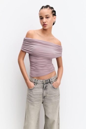 Off-Shoulder Tulle Top Pale Lilac | Women Off-The-Shoulder