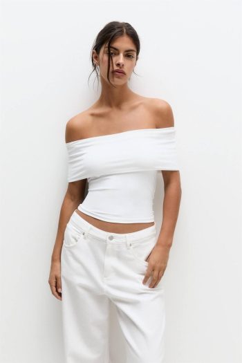 Bardot Neckline T-Shirt Off White | Women Off-The-Shoulder