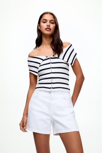 Off-The-Shoulder Top With Zipper Ecru/navy | Women Off-The-Shoulder