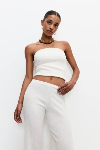 Rustic Gathered Bandeau Top White | Women Off-The-Shoulder