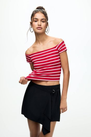 Striped Off-The-Shoulder Top White/red | Women Off-The-Shoulder