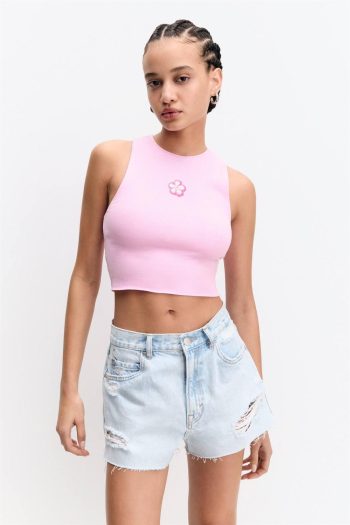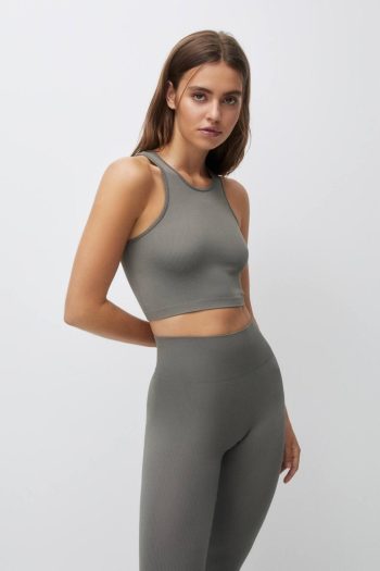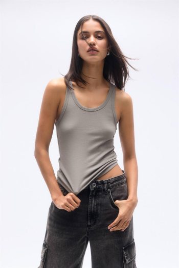 Ribbed Tank Top With Wide Straps Grey | Women Tank Tops