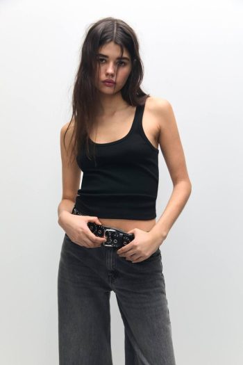 Ribbed Tank Top With Wide Straps Black | Women Tank Tops