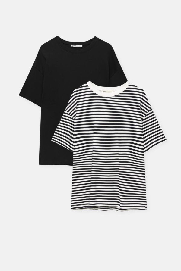 2-Pack Of Oversize Short Sleeve T-Shirts Striped | Women Oversize