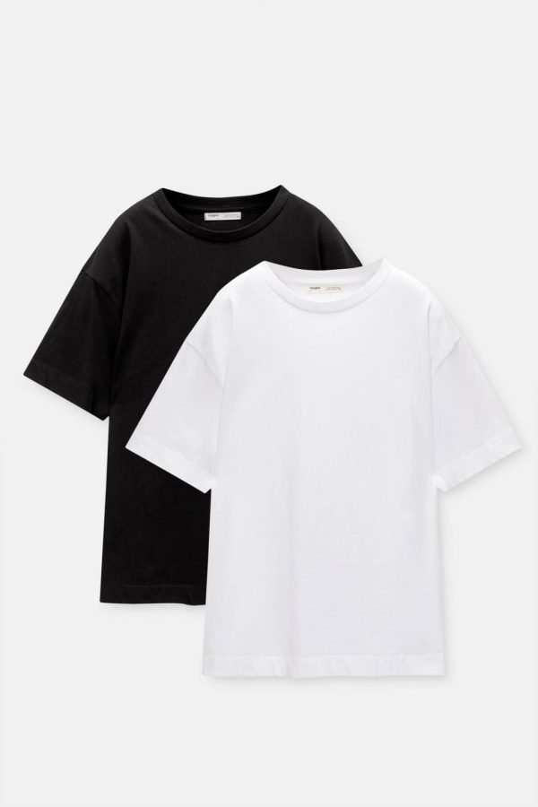 Pack Of 2 Basic Oversize T-Shirts With Short Sleeves And A Crew Neck. Made Of 100% Cotton.