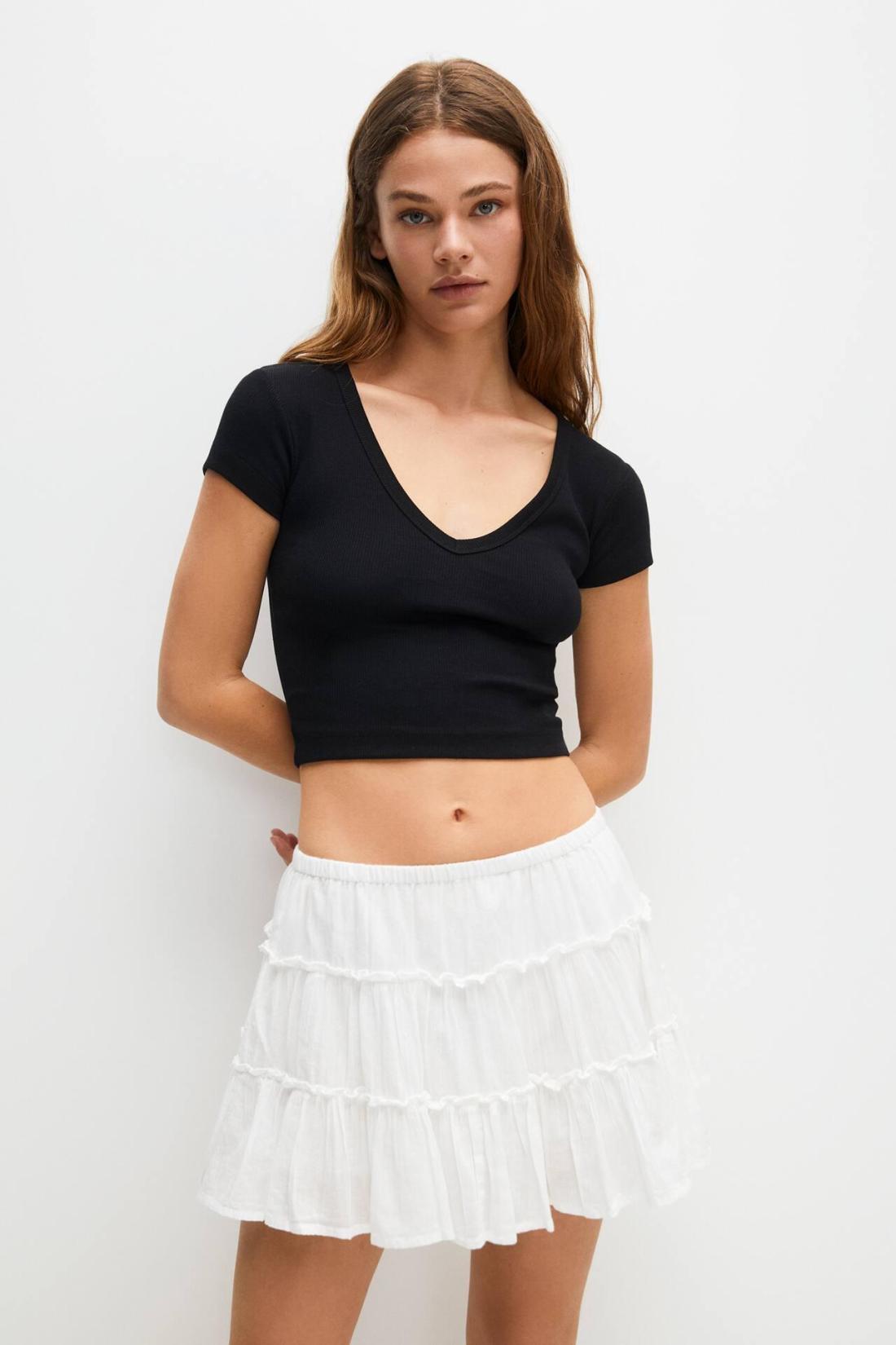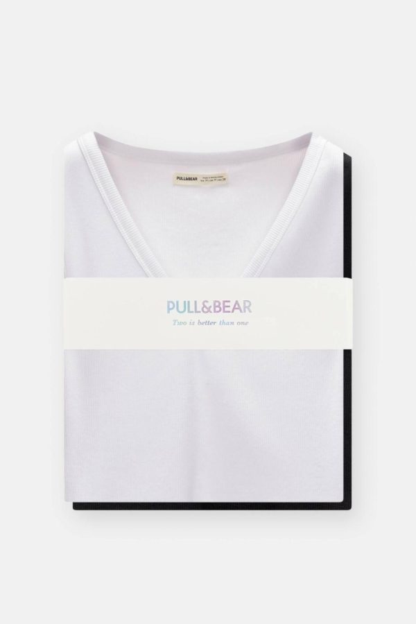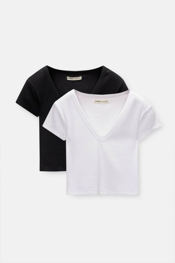 Pack Of Basic Cropped Ribbed T-Shirts With Short Sleeves And A V-Neckline. Made Of Stretch Fabric.