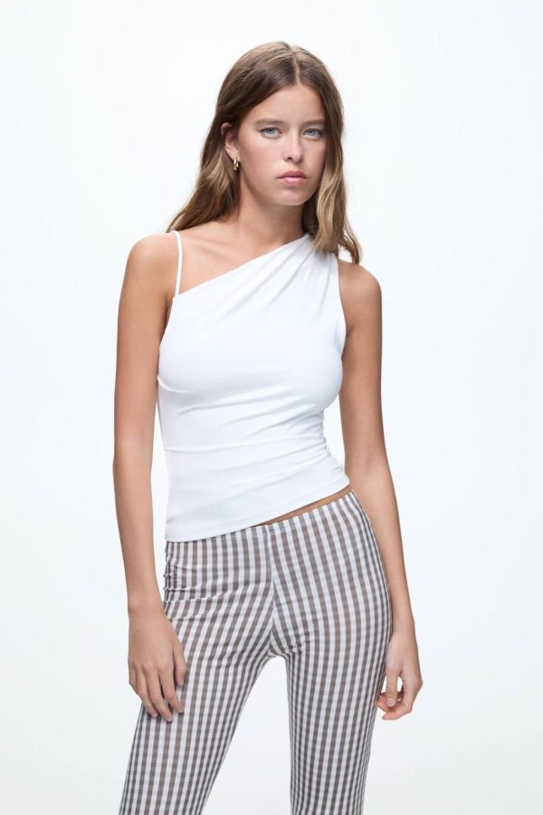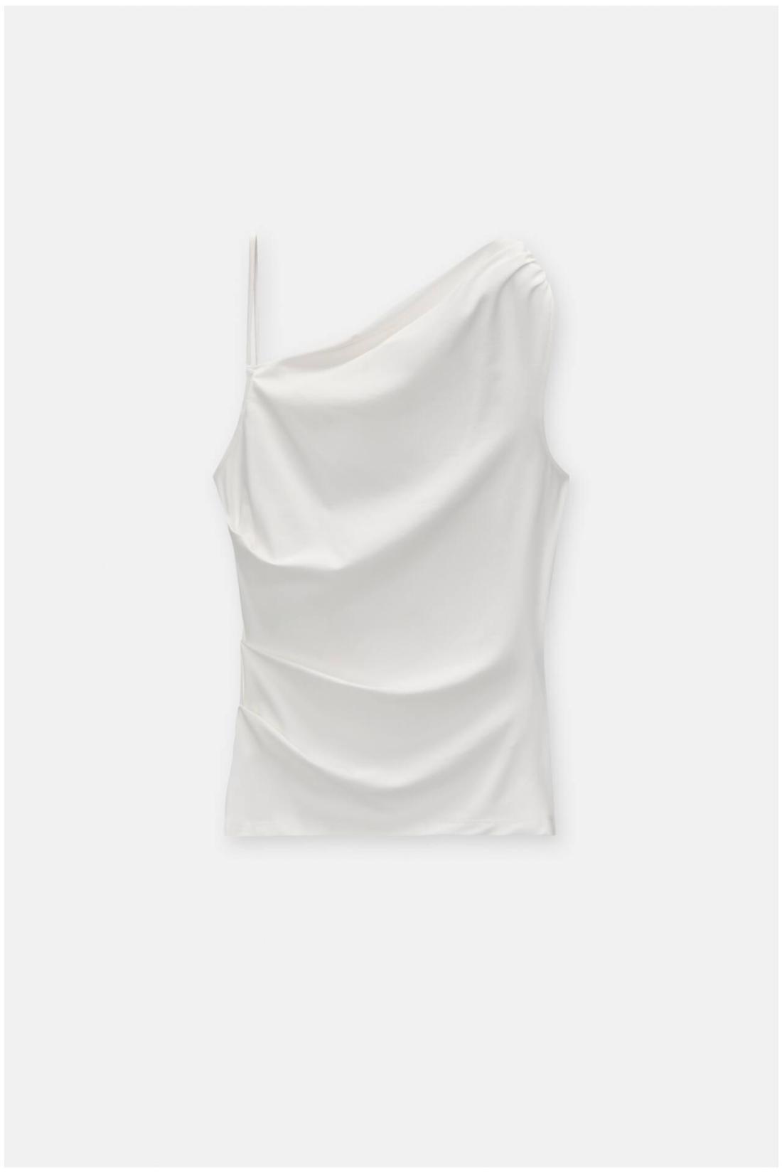 Asymmetric Top With Gathered Detail On The Shoulder. Made Of Very Stretchy Polyamide Fabric. Composición