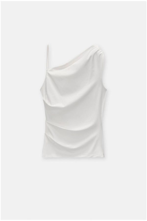 Asymmetric Top With Gathered Detail On The Shoulder. Made Of Very Stretchy Polyamide Fabric.
