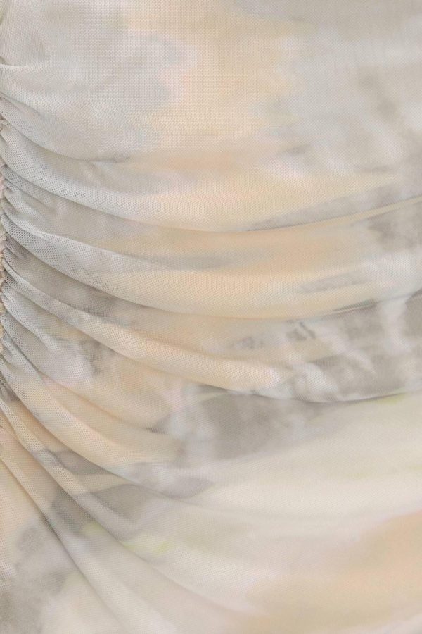 Tie-Dye Print Tulle Top With Asymmetric Neckline And Gathered Detail. Made Of Very Stretchy Fabric.