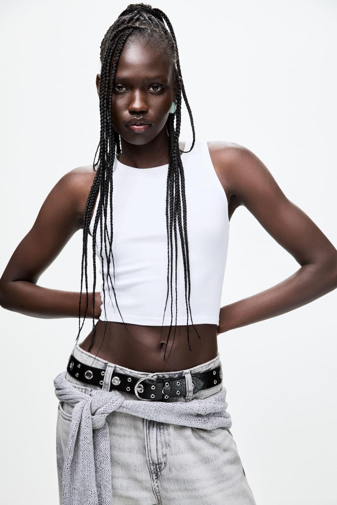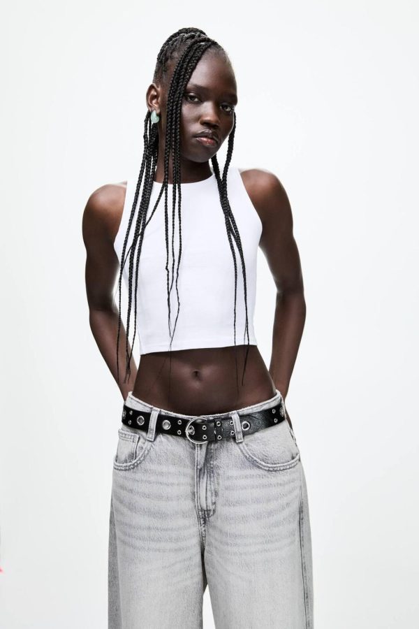 Basic Sleeveless Cropped Tank Top With A Round Neckline. Made Of Very Stretchy Fabric.