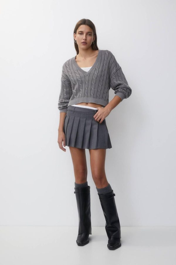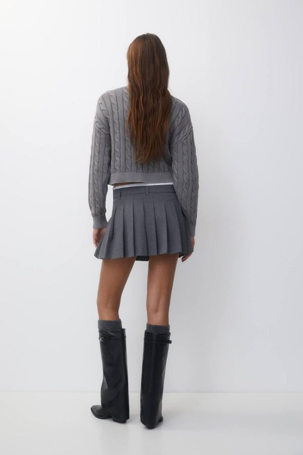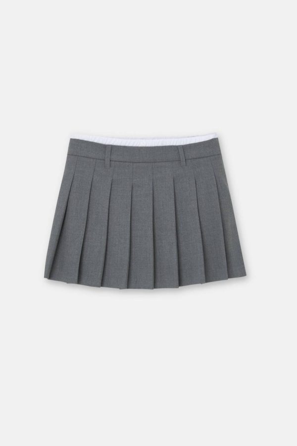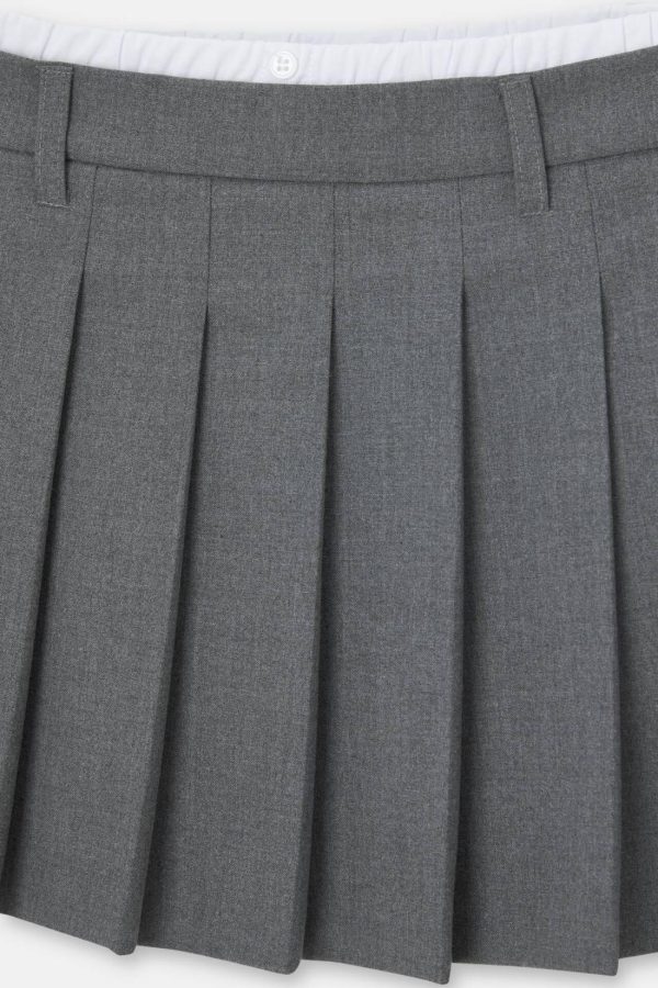 Box Pleat Mini Skirt With Boxers Waist Grey | Women Mini