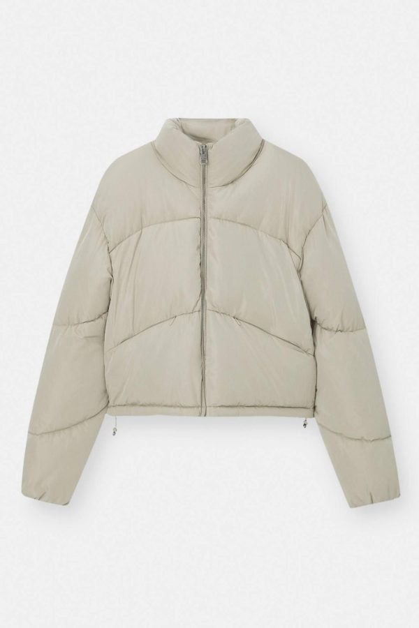 Cropped Puffer Jacket Featuring A High Neck, Seam Details, Zipper Fastening And Long Sleeves. Composición