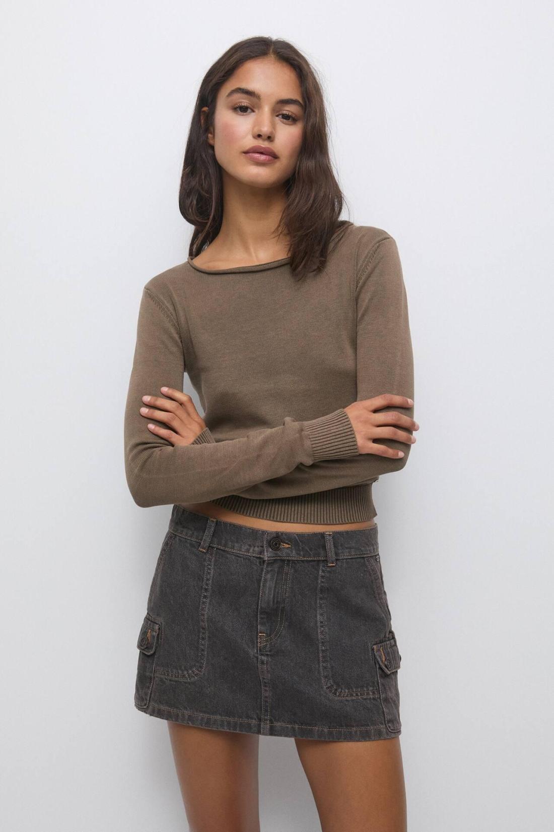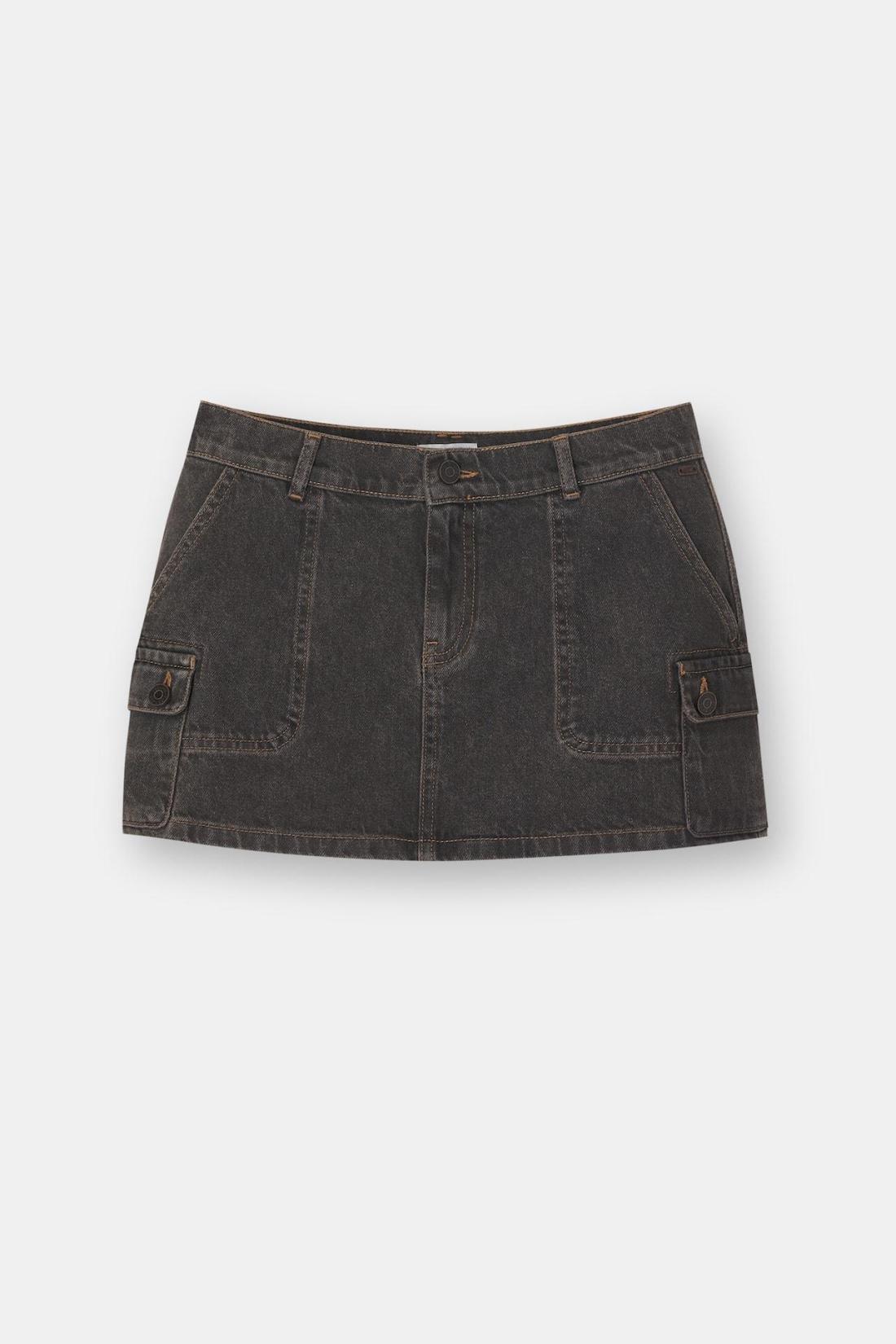 Cargo Denim Mini Skirt With Pockets, Belt Loops, And A Zipper Fly And Top Button Fastening. Composición
