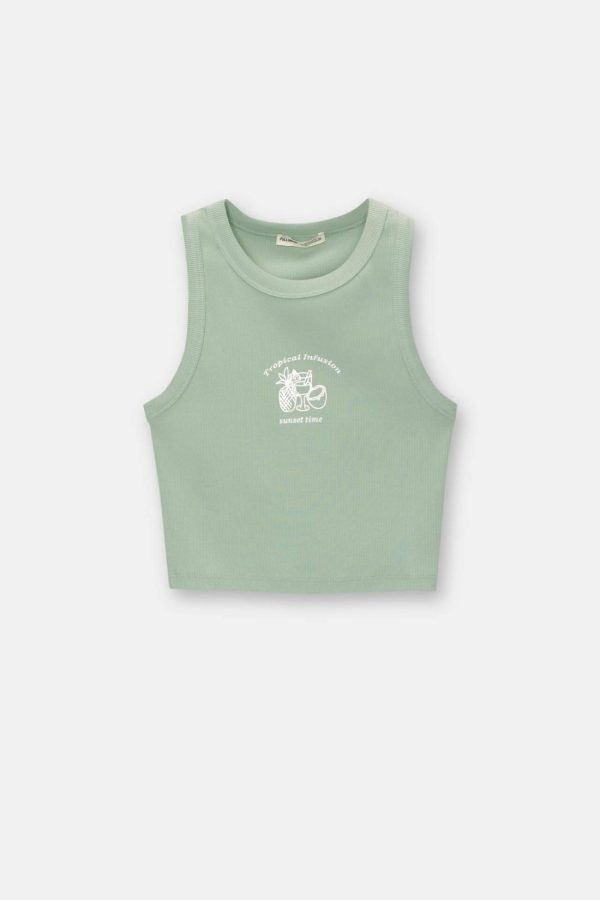 Crew Neck Tank Top With A Graphic On The Front. Made Of Stretch Fabric.