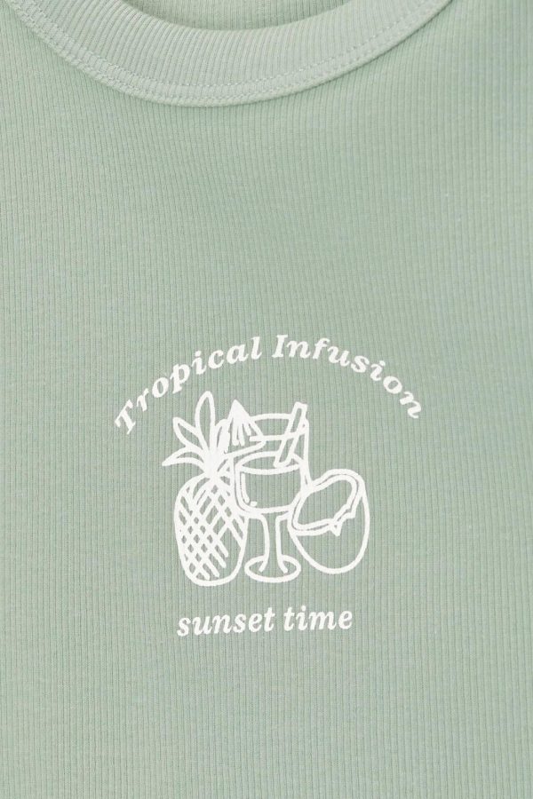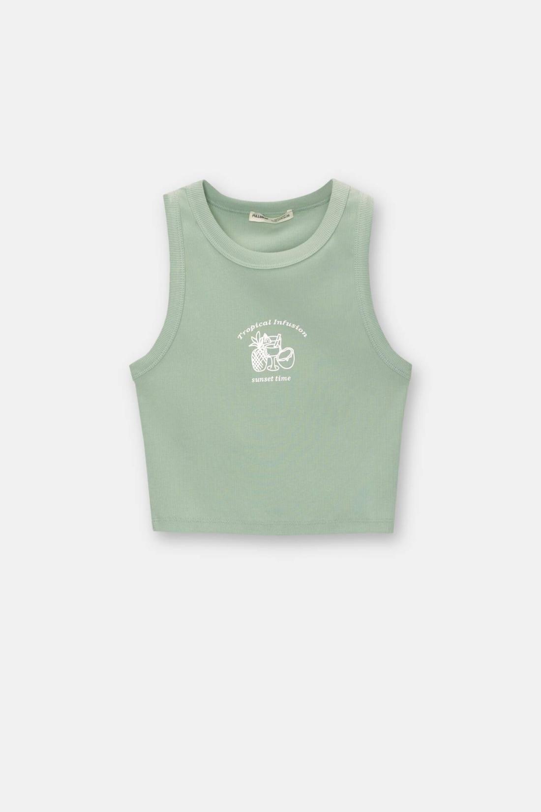 Crew Neck Tank Top With A Graphic On The Front. Made Of Stretch Fabric. Composición